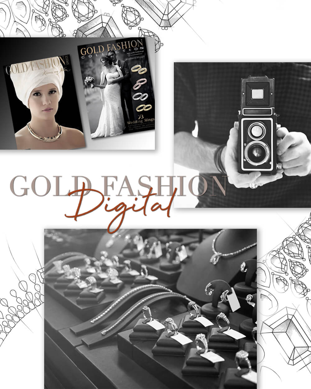To 1987 εκδίδει το πρώτο τεύχος του περιοδικού “GOLD FASHION COLLECTION” . Μέσα σε αυτά τα χρόνια έχουν συμβεί πολλά. Η εμπιστοσύνη και η στήριξη που μας δείξατε, οδήγησε στην δημιουργία της πρώτης μας ιστοσελίδας, το 2009, που αποτέλεσε το πρώτο site με online επαγγελματικό οδηγό για τον κλάδο μας. Ένα χρόνο μετά, ο οδηγός μας παίρνει έντυπη μορφή και ένα νέο περιοδικό προστίθεται στην οικογένεια του Gold Fashion. Λίγα χρόνια αργότερα, το 2014, η δεύτερη γενιά έρχεται στην ομάδα της εταιρίας και οι υπηρεσίες μας εξελίσσονται. Προσφέρουμε πια υπηρεσίες διαφήμισης και marketing στους επαγγελματίες του κλάδου.